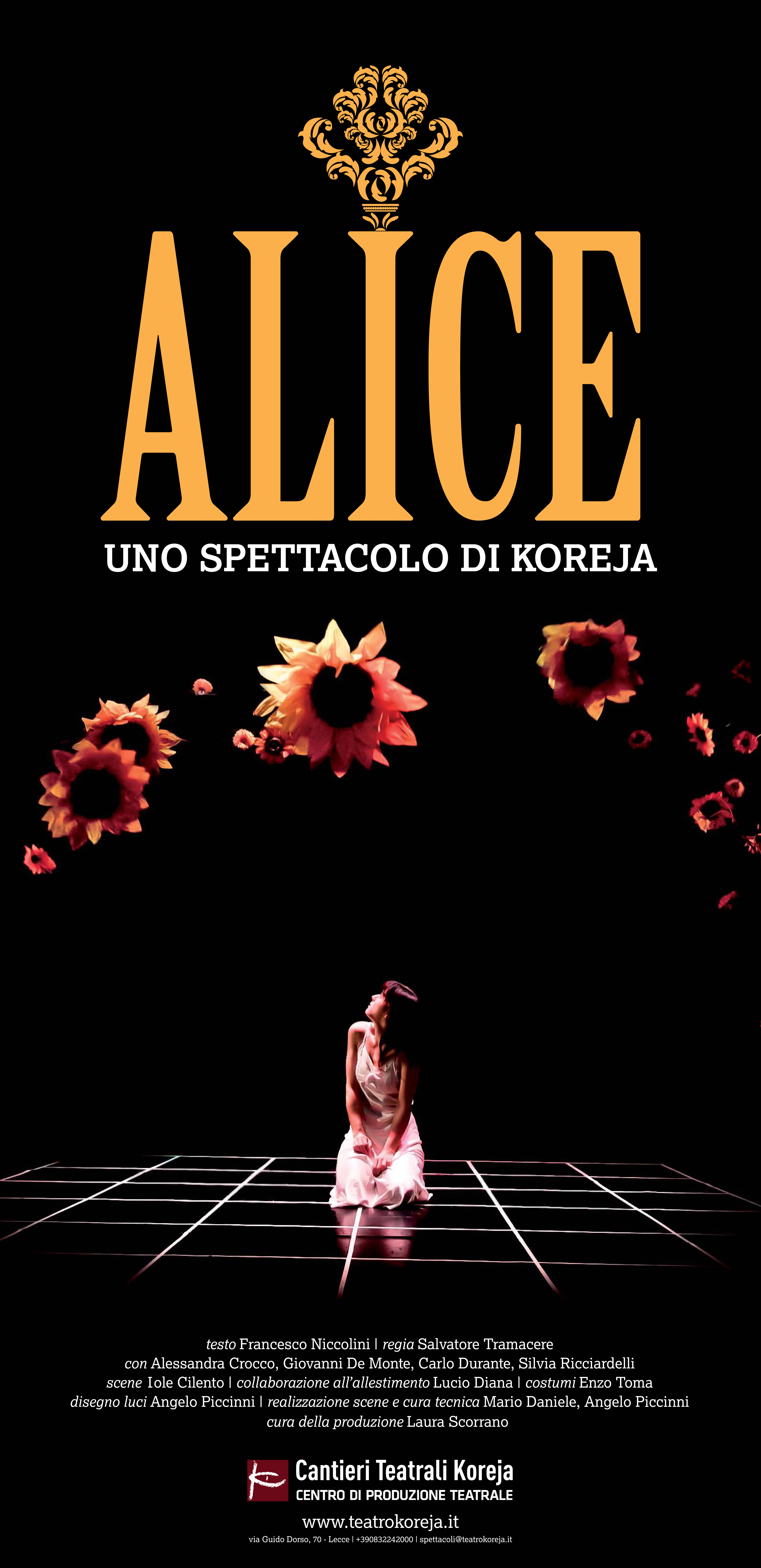 Alice troubles and amuses as well. When Carroll published "Alice in Wonderland" an english newspaper wrote: «this novel own this benefit, it does not have a moral, and that doe not teach anything». Masolino D'Amico goes over: «a book of overwhelming anarchy, a book where the authority is despotic, fickle and intolerant, where the institutions are incomprehensible and unfair, where the deity is not even mentioned; a book where the usual lessons addressed to children are costantly ridiculed, where the educative poems, hardly teached by heart at school, are deprived of all meaning». On top of all this, its author, Lewis Carroll, doesn't exist: he's a big fantasy that fits the reverend Charles Lutwidge Dodgson's identity, discrete and stuttering matemathician as well as exceptional photographer, obsessed by the unstoppable childhood that you can not stop growing and becoming adult: What is Alice if not a book for adults fed up of growing up for nothing? This is a book that reconciles us with the most irremediable misfortune of life: never to be adults and then, suddenly, no longer children. On the stage a white rabbit, an egg wiser than a dictionary, a cat, a queen, a hatter, some daisies and two knights. It's a small army made of crazy deranged prepared for facing a big enigma: how to show this masterpiece? How to present it, after one hundred and fifty years, to a new audience? What topsy-turvy world could defile our children and the children asleep in us, now adults? It doesn't make sense ‘translating' literally the Carrol's text: new nonsense, new veins of madness and fun, new characters and wonders fill this Alice, applying then the rules of the Theatre, that real one, which belongs to the companies that for surprising again have to work hardly.