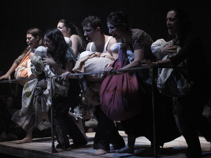 Katër i Radës is not just an opera of the memory. It’s an effort, though the music, to release the universe of human who went to meet one of the many tragedies in the Mediterranean: the one of a small Albanian boat overloaded with men, women and children, sank in March 1997 in front of the Italian coast. In the single act crowd the Drowned and the Saved, those who survived and those who died, their voices, their thoughts, and especially their journey to the dark, full of great anxieties and small wishes, dreams and fears, digressions, apparitions, sudden recollections.
