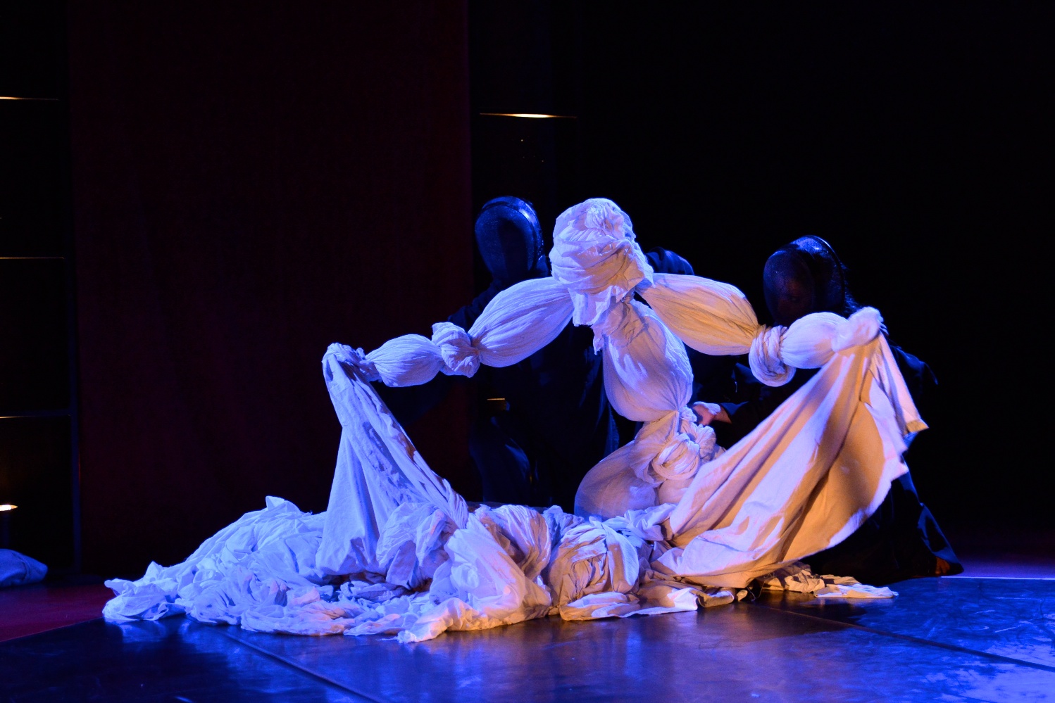 On the stage, similar to a ring, a heap of rags, thanks to the actors, becomes voiles, balls, boxing gloves, stomachs, and even dolls/marionettes which feel strong emotions as tenderness, memory and loss elaboration.