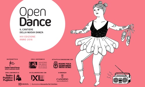Dall'avere un corpo all'essere corpo. La XIII edizione di Open Dance racconta la possibilità di tornare alla materia come fonte, e di legarla ai luoghi fisici come misura d'indagine per l'azione. Il corpo politico che si riappropria con libertà degli spazi attraverso le pratiche della danza: performances site-specific e un percorso di fruizione integrata legano spazi teatrali e non al progetto artistico 2016. Il corpo-soggetto che non è solo strumento ma luogo stesso in cui far convergere la passione del gesto e del movimento, rappresenta la centralità dell'atto cui viene sottratta la parola. Il danzatore non interpreta, non recita una parte, ma esiste e comunica attraverso il suo corpo, e con la sua energia vitale rende possibile la condivisione dell'esperienza con lo spettatore e una comunità del gesto. Quest'anno Open Dance ospita Anticorpi EXpLo dando spazio ad alcune delle più interessanti ed originali performances della giovane danza d'autore promossa dal Network Anticorpi XL. L'internazionalità delle proposte e la valorizzazione del territorio come risorsa di talenti abbracciano il sostegno alla crescita artistica con uno sguardo sempre rivolto ai nuovi linguaggi, alla ricerca e alla sperimentazione.